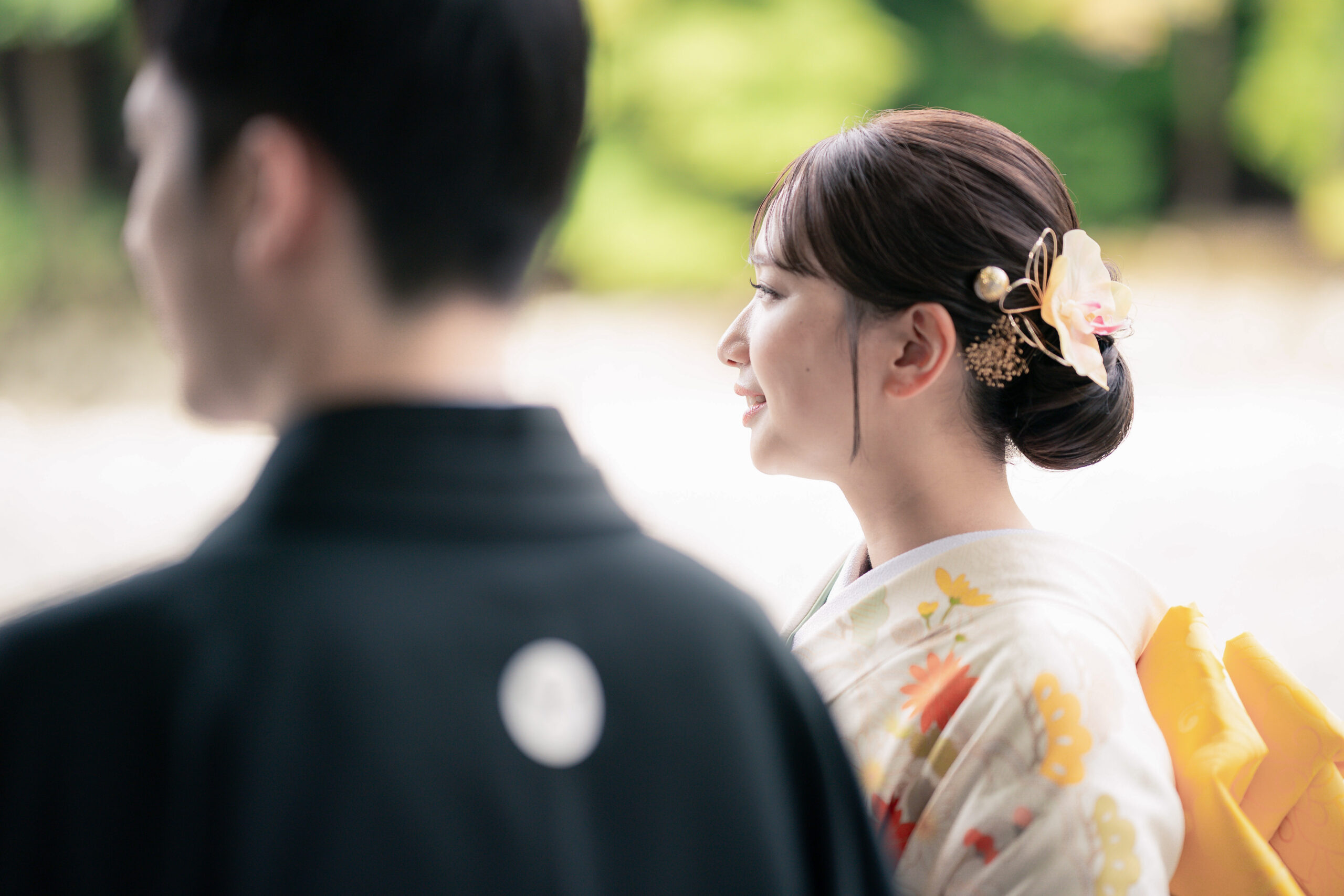 - 私たちは結婚式は行わず、夫婦としての節目をきちんと形に残したいと考え、日本の心のふるさとともいわれる伊勢神宮で入籍奉告を行いました。天照大神様が祀られる特別な場所で感謝の気持ちを伝えられたことは、何ものにも代えがたい経験です。当日は衣裳とヘアメイクにもこだわりましたが、仕上がりは想像以上で、とても満足しています。準備期間中から担当プランナーの方が細やかにサポートしてくださり、不安なく当日を迎えることができました。また、当日のヘアメイクさんも私たちの希望を丁寧にくみ取ってくださり、自分らしい姿で大切な時間を過ごせたことが嬉しかったです。入籍奉告を通して、伊勢は私たちにとってかけがえのない思い出の場所になりました。これからも夫婦で伊勢を訪れたい、そう思える一日でした。