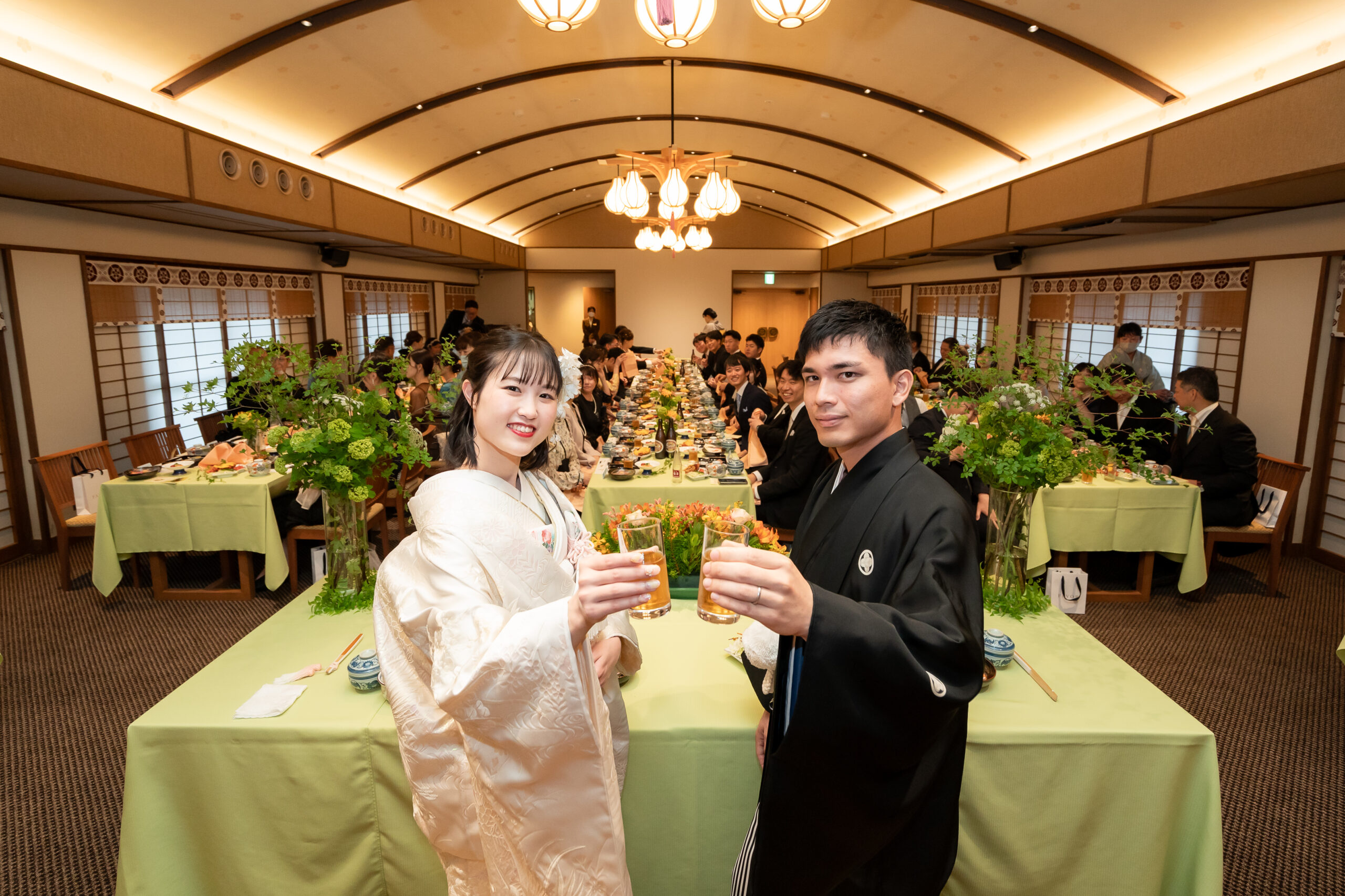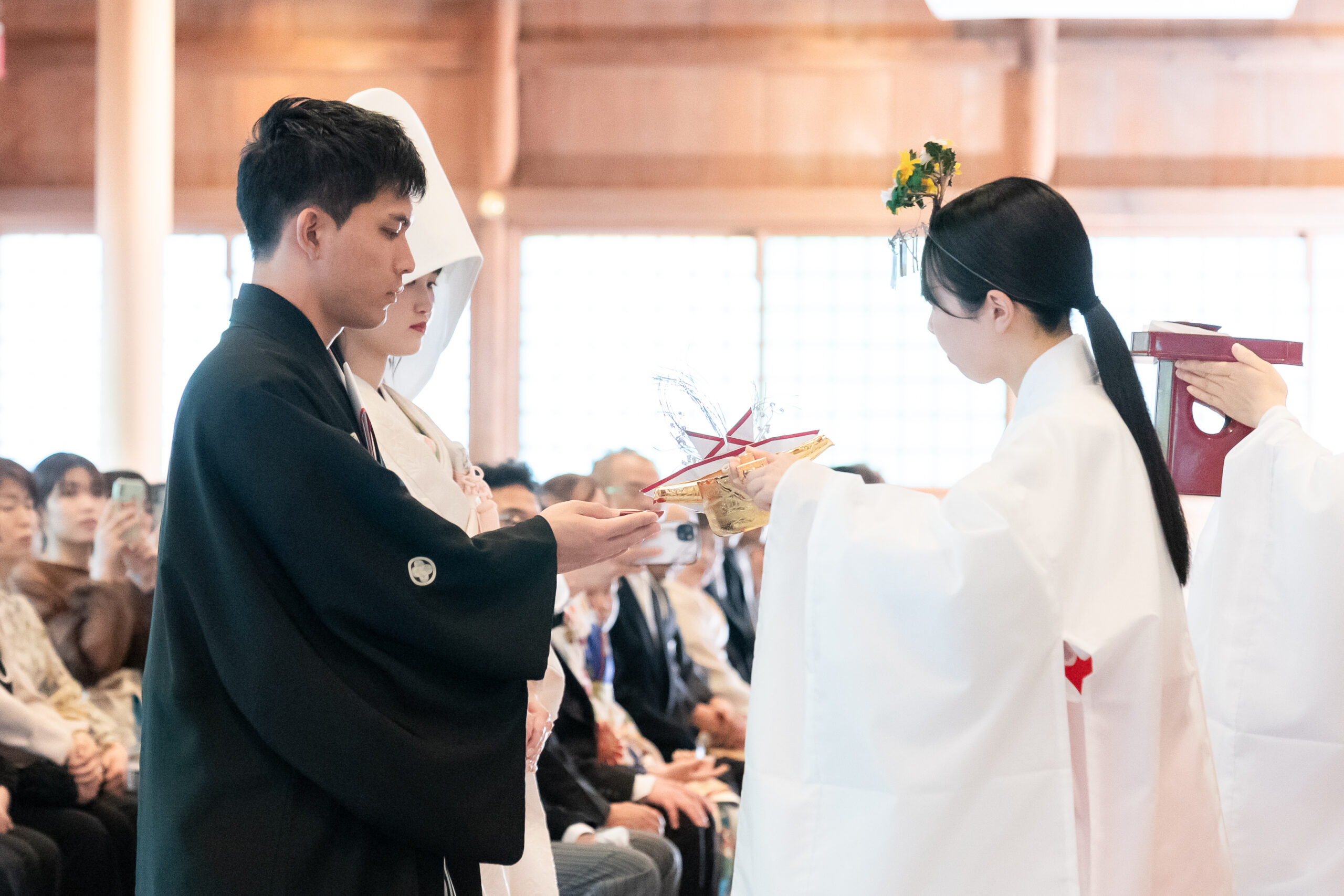 私たちは伊勢を代表する神社である猿田彦神社で結婚式を挙げました。当日は家族や親しい友人など約60名に集まっていただき、挙式と披露宴を行いました。格式ある神前式でありながら、皆さまの温かな祝福に包まれ、とても和やかで一生忘れられない一日になったと感じています。準備期間中は、担当プランナーの方と細やかに連絡を取りながら進めることができ、不安に思うことはほとんどありませんでした。当日も私たちだけでなく、両親へのサポートやゲストへの配慮まで丁寧に対応してくださり、安心して式に集中することができたのが印象的です。厳かな神社の雰囲気の中で、大切な人たちと笑顔を交わせた時間は、何にも代えがたい宝物になりました。伊勢で結婚式を挙げて本当に良かったと、心から思える一日でした。